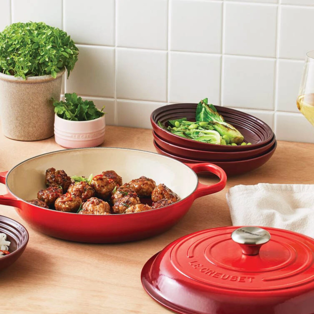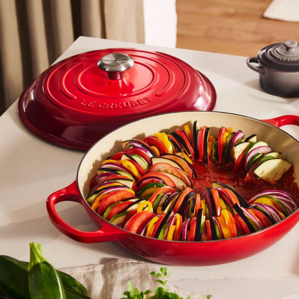 A Caçarola Buffet Signature da Le Creuset une funcionalidade e elegância, sendo perfeita tanto para o preparo quanto para servir à mesa. Seu design sofisticado permite levar diretamente do forno à mesa, agregando charme e praticidade à sua cozinha.