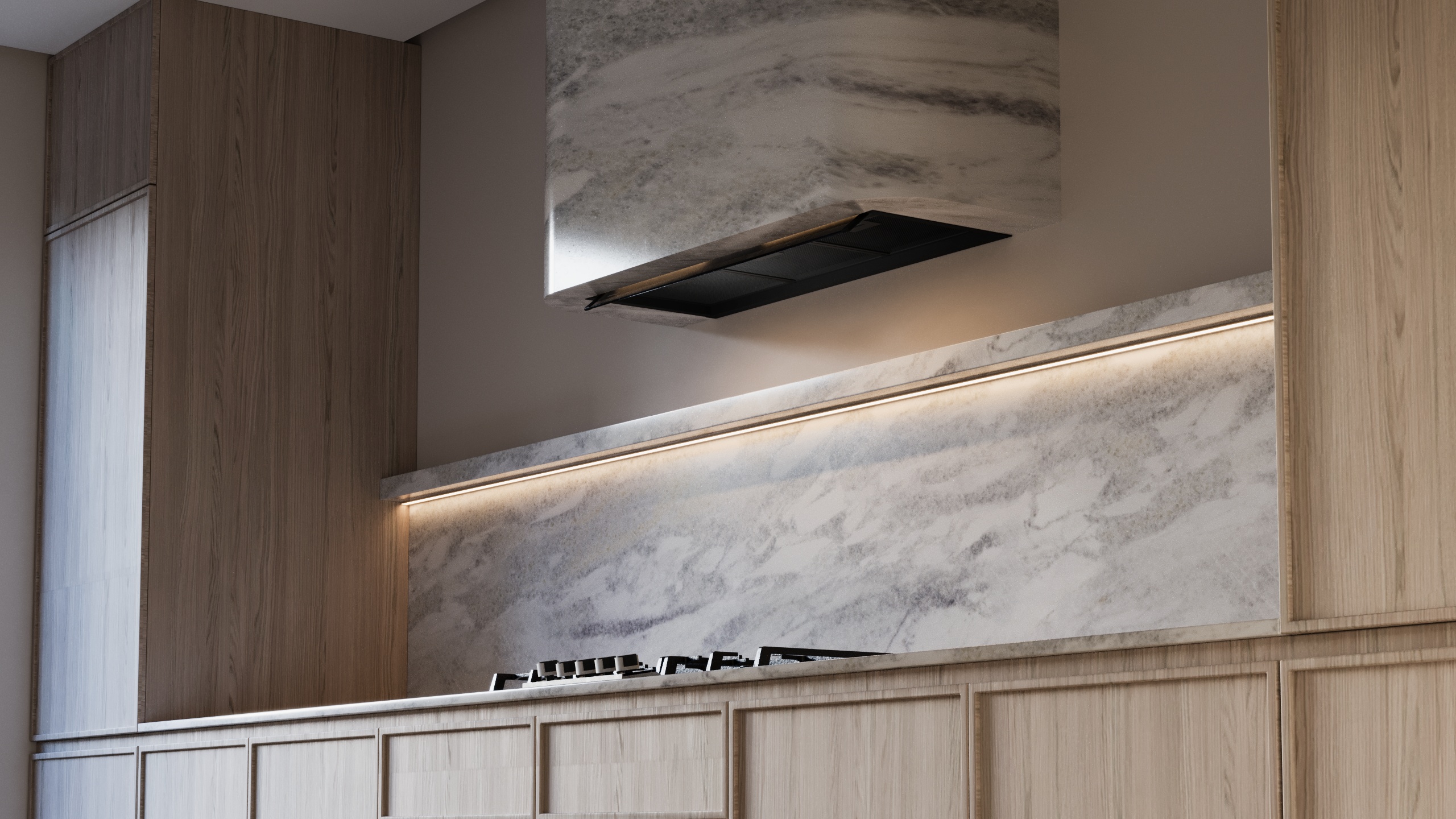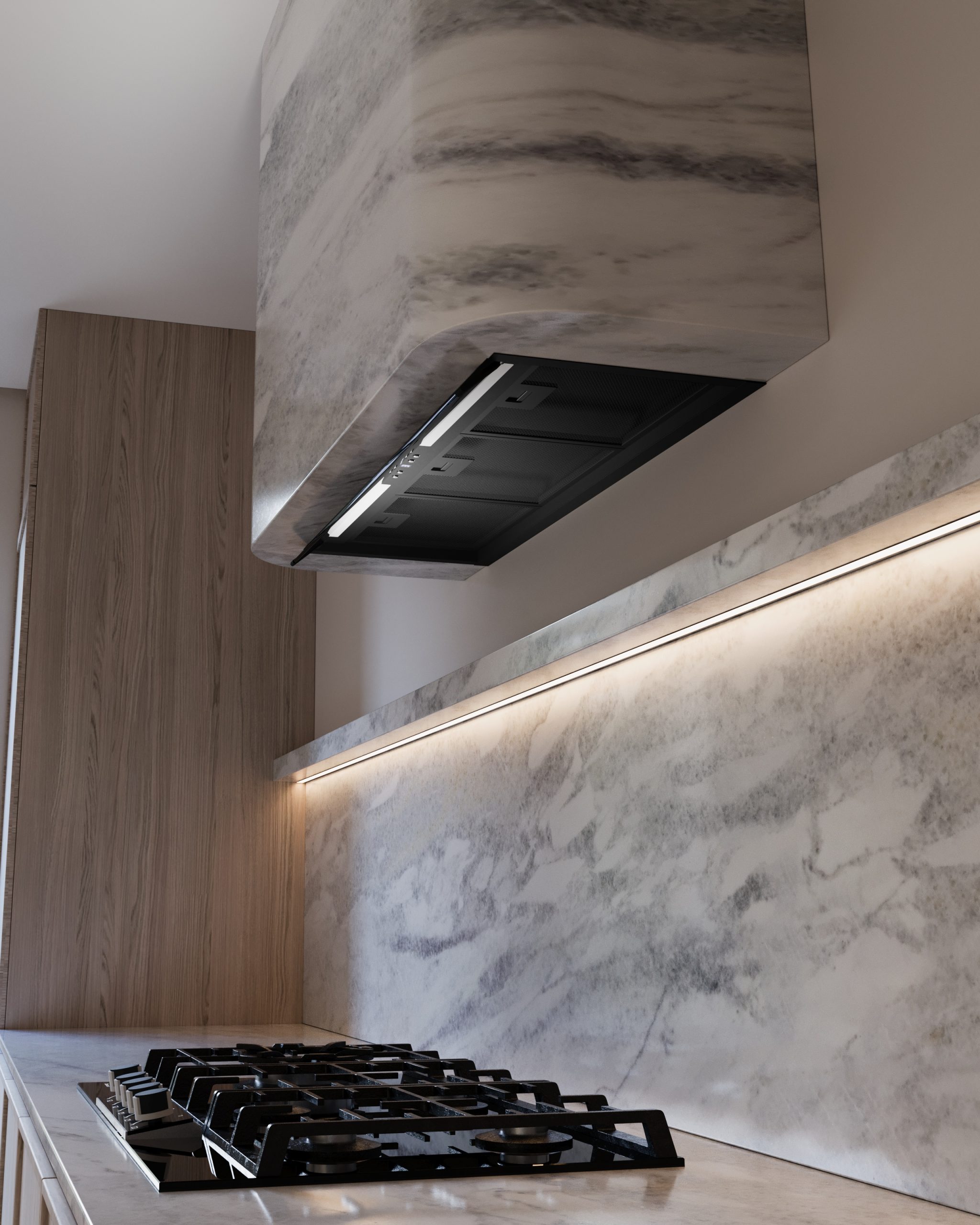 Coifa de Embutir Montreal 90 cm DeBacco – Design clean em inox, alta capacidade de sucção e funcionamento silencioso. Ideal para cozinhas gourmet que exigem eficiência e sofisticação integradas ao mobiliário.