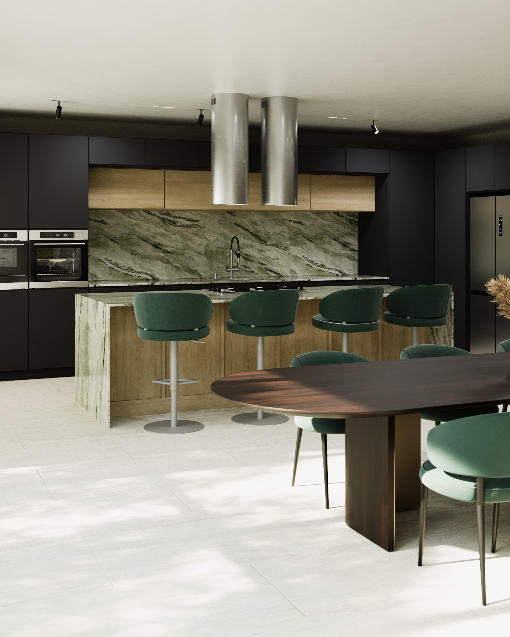 Coifa Zurique Tubular de Ilha DeBacco – Design premium em inox com alta eficiência de exaustão e iluminação LED. Potência, silêncio e elegância para sua cozinha gourmet.