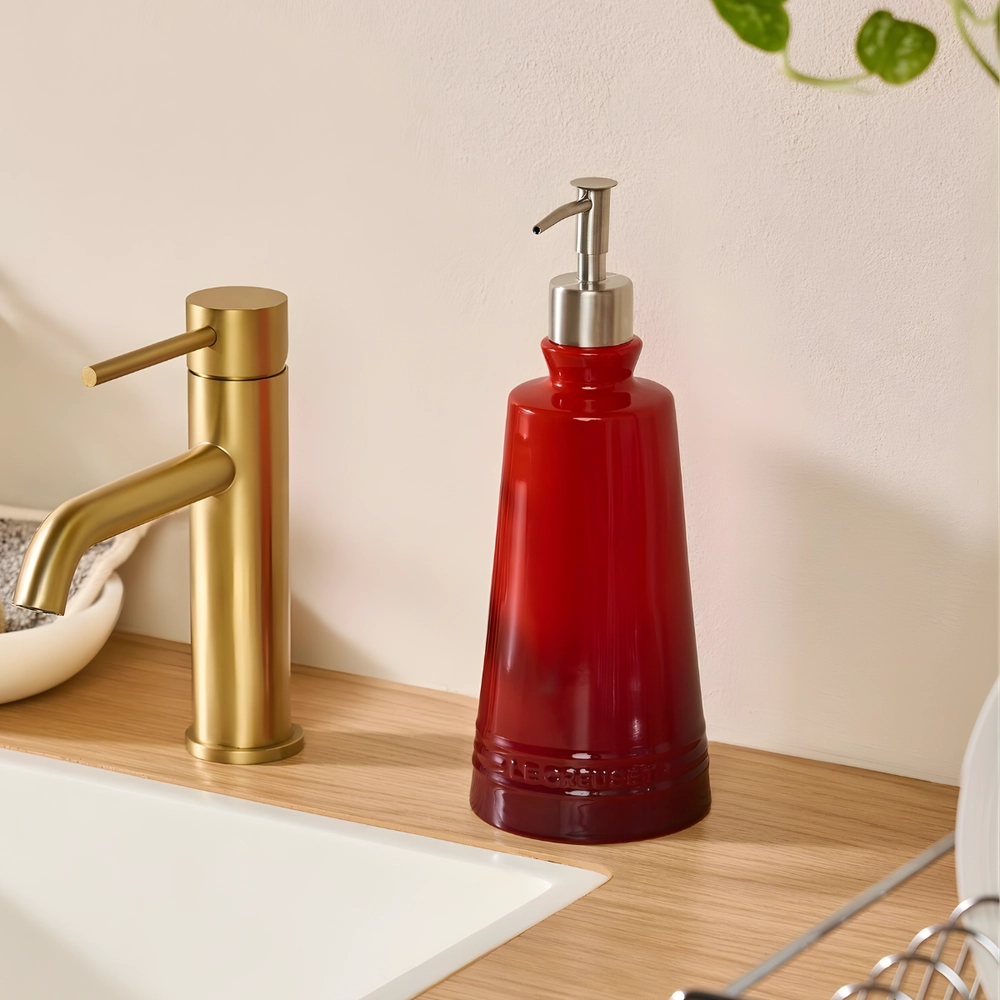 Transforme a estética e a funcionalidade da sua cozinha com o Dispenser para Sabão da Le Creuset, uma peça que combina a inconfundível sofisticação da marca com a praticidade necessária para o dia a dia. Fabricado em cerâmica premium, este dispenser não só garante durabilidade excepcional, mas também apresenta um design elegante que eleva instantaneamente o visual de qualquer bancada, trazendo o prestígio do estilo Le Creuset para a sua casa; com uma generosa capacidade de 580ml, ele é perfeitamente funcional para armazenar sabonete líquido, detergente ou sabonete para as mãos.