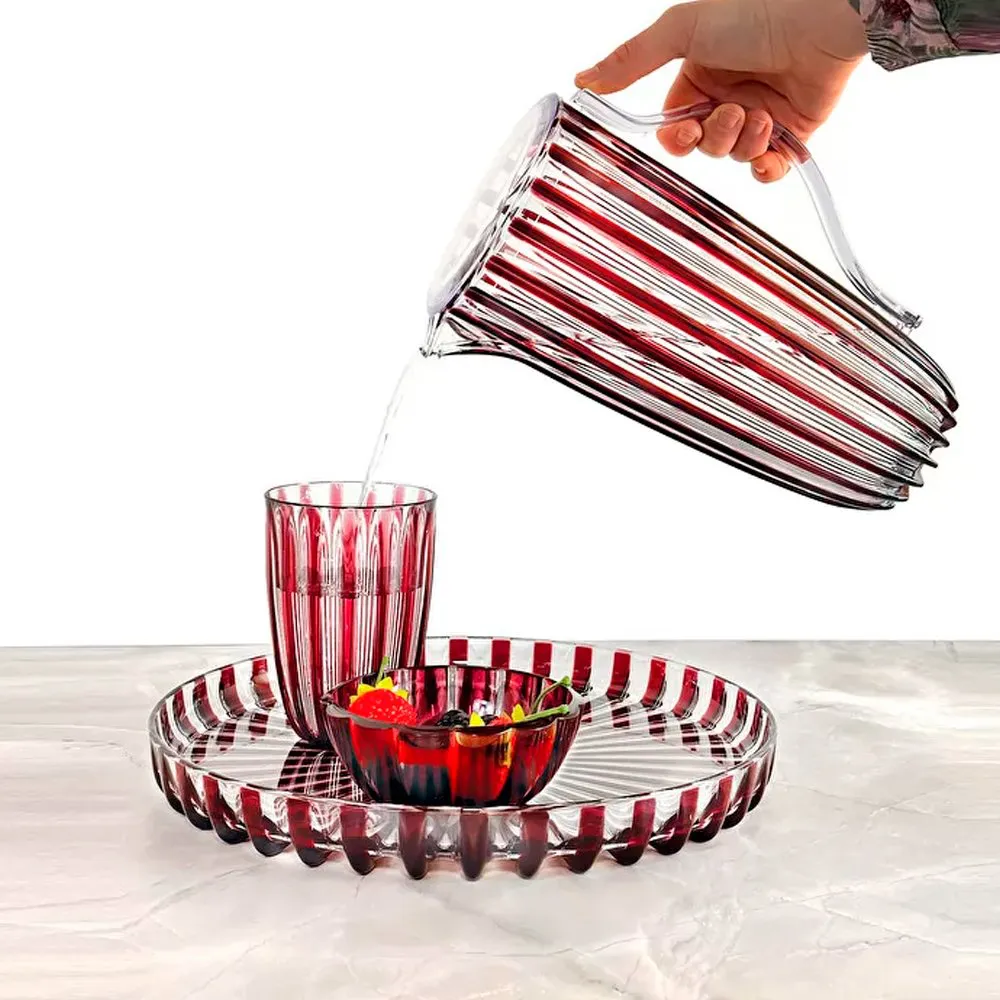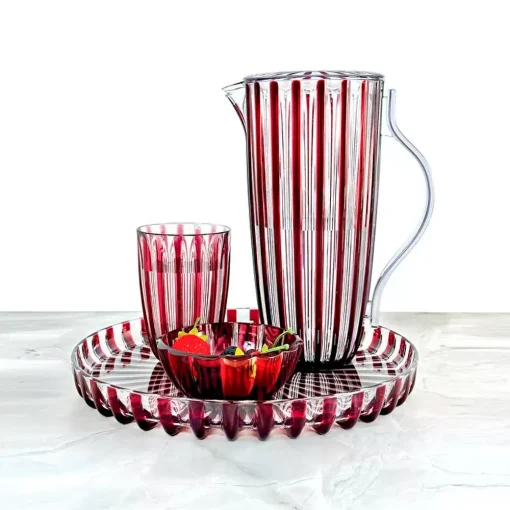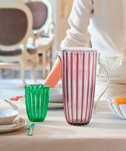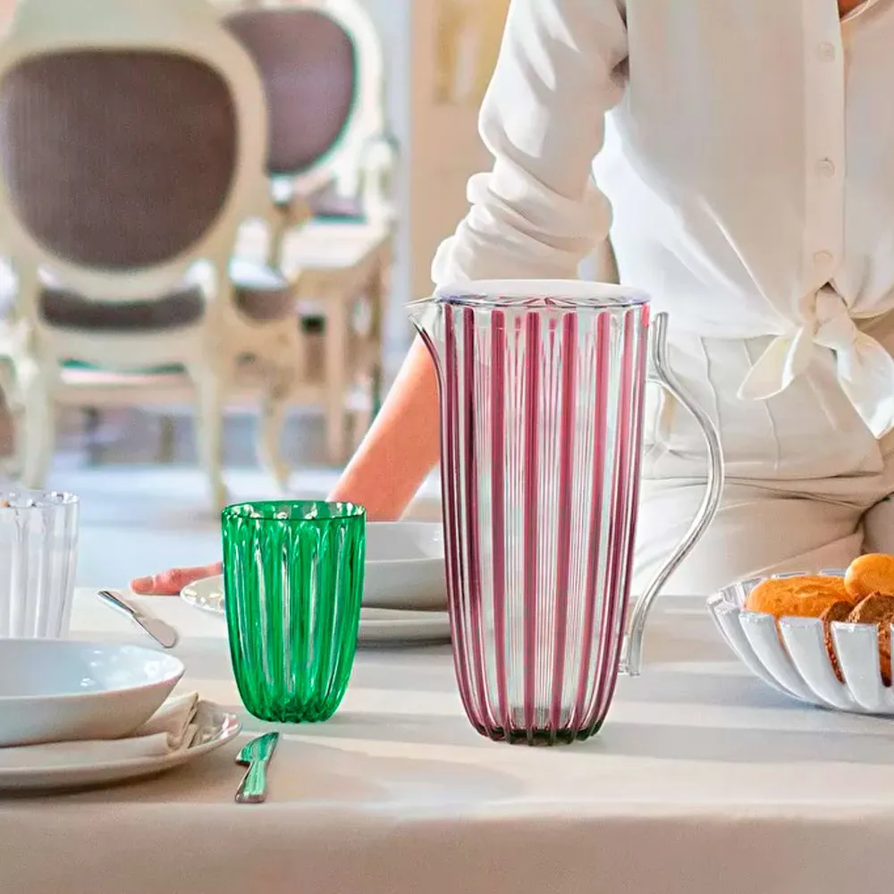 Funcionalidade e Estilo: A Jarra Dolcevita brilha em qualquer ocasião. Sua tampa com grade de retenção de gelo mantém suas bebidas refrescantes, enquanto o bocal antigotejamento e a ergonomia aprimorada do cabo tornam o servir uma experiência fluida e elegante. Com cores preciosas e uma transparência única, ela é perfeita para festas ao ar livre e celebrações especiais.