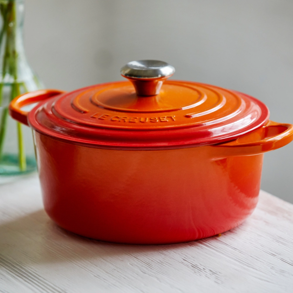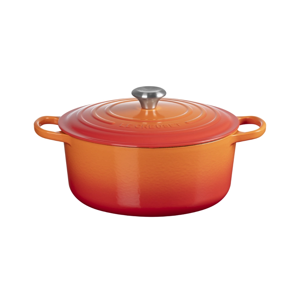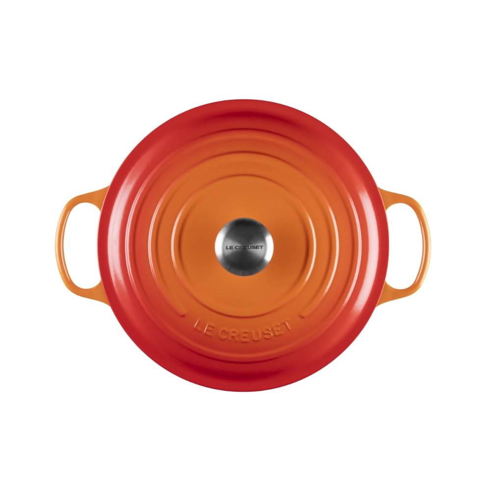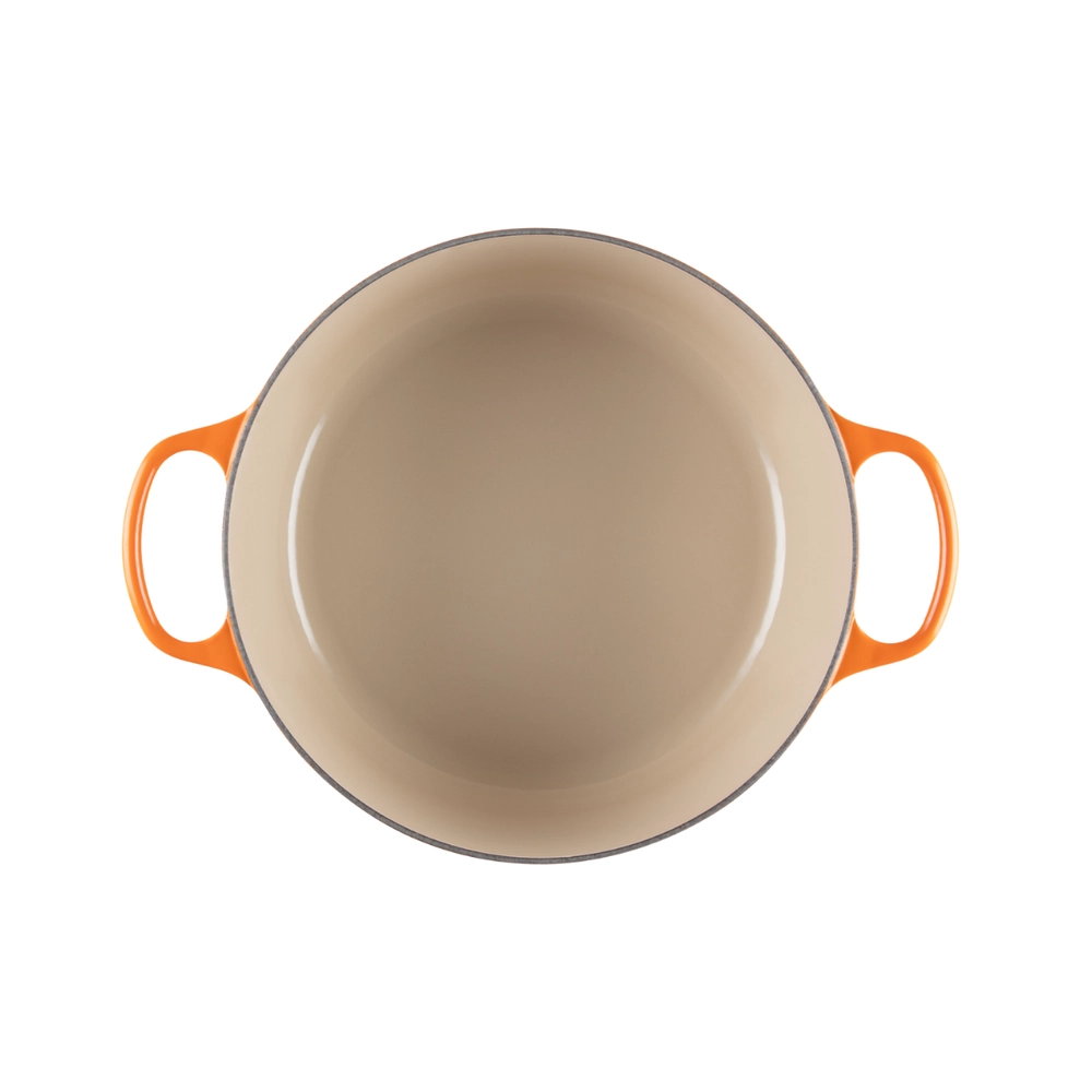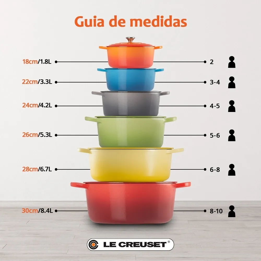 Alças espaçosas permitem o uso de luvas grossas, possibilitando uma transferência segura do fogão para o forno e do forno para mesa;